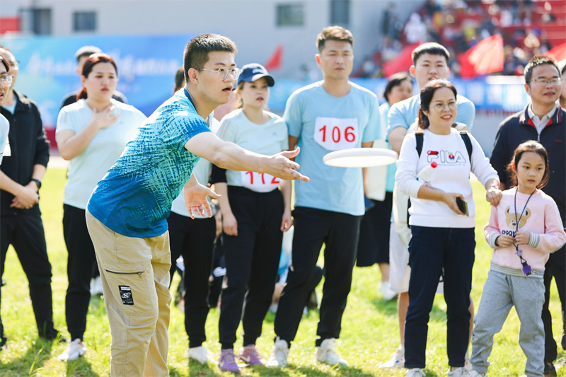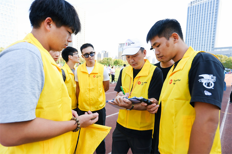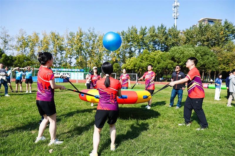 在趣味三項中,鼓動一心,共繪藍圖,急速飛盤,都需要眾人鼎力相助。歡聲笑語中,大家齊心協(xié)力完成了比賽,拉近了彼此間的距離。