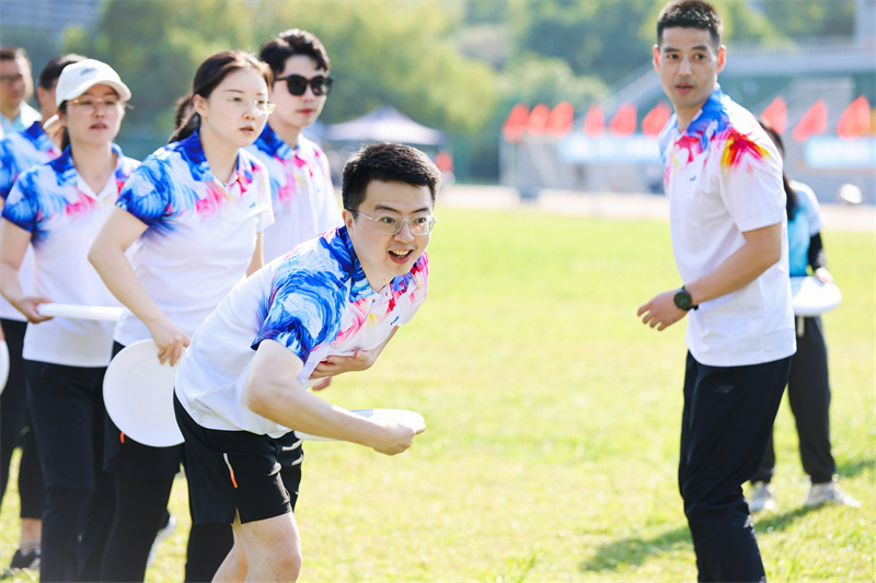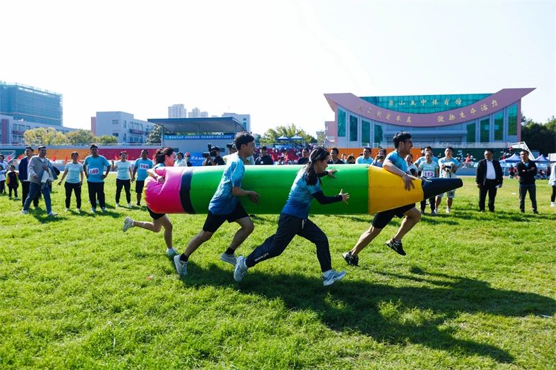 下午,趣味賽項目將整場運動會推上高潮,拔河、跳長繩、趣味三項、12×50接力賽等團體項目既考驗競技能力,又要求通力協(xié)作。場上,運動員頑強拼搏、奮勇爭先。邊上,觀眾鼓足力氣助威。一時間,加油聲、吶喊聲、歡呼聲,此起彼伏,熱鬧非凡。