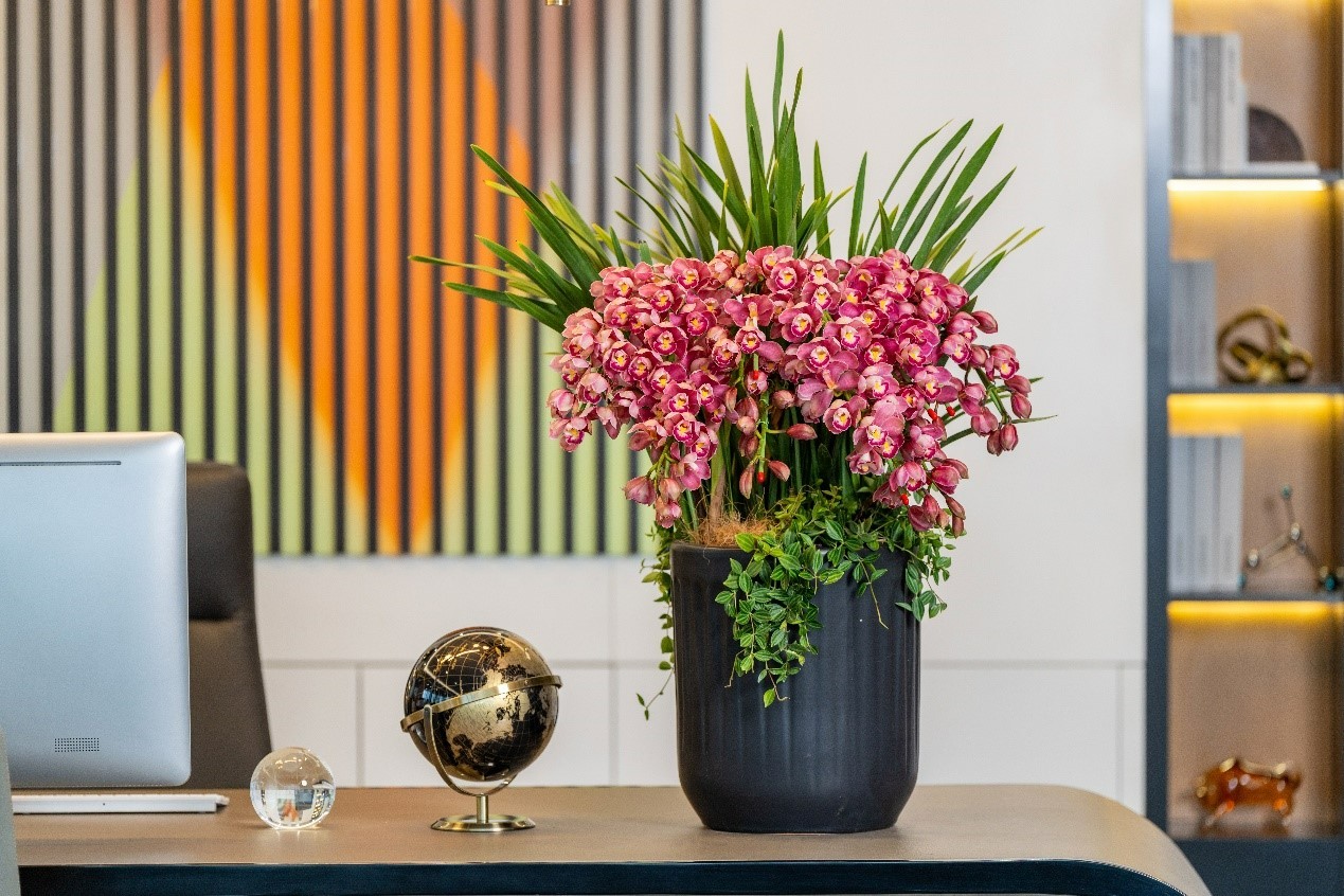 蘭中皇后蝴蝶蘭、蘭花新星大花蕙蘭、花中君子國(guó)蘭一直是近年來備受青睞的年宵花市“人氣王”。蝴蝶蘭優(yōu)雅大方,綽約多姿,且色彩繽紛,品種多樣,一直是傳化年宵花展中的當(dāng)家花旦。大花蕙蘭秀麗挺拔,洋洋灑灑,不僅花枝繁茂,陽(yáng)光下還會(huì)散發(fā)出清新淡雅的幽香,從視覺到嗅覺,可以多維度感受它的風(fēng)雅。還有詩(shī)人筆下“蘭之猗猗,揚(yáng)揚(yáng)其香”的國(guó)蘭,蓬勃青翠,飄逸出塵,一花一葉都傳遞著中式美學(xué)的浪漫。
