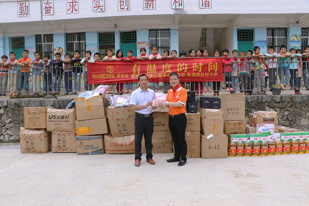 雷諾表愛心小組帶著滿滿的社會責任感走進同社村小學,詹總表示這并不是雷諾表第一次參與愛心公益活動,雷諾表的每一次愛心行動只是拋磚引玉,希望能夠影響更多的人去關注公益事業(yè),人人貢獻一點愛,這個世界會更精彩。更何況與駐守大山的老師相比,我們的愛心助學行動做得遠遠不夠,我們更應該向這些默默無聞的教育工作者學習。雷諾表為同社村小學的每一位老師送上雷諾手表,用有溫度的時間和老師們一起陪伴孩子們的成長。