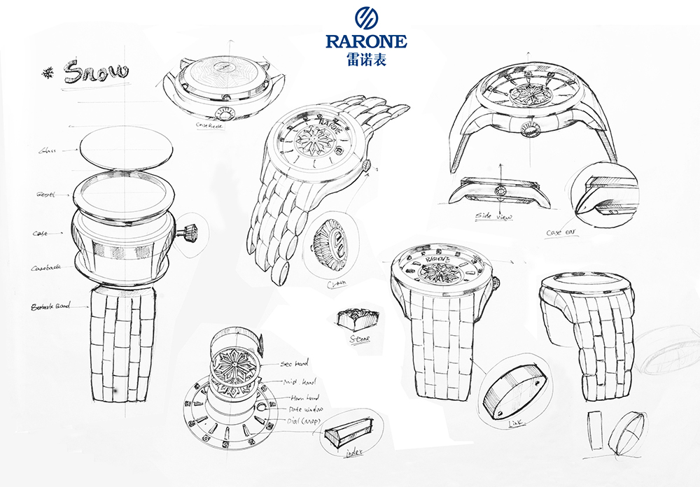 “夜色系列”是雷諾表唯一的只做女表的系列,打造市場上唯一擁有雪花設計理念的腕表。表盤中央為分層式結構,時針、分針、秒針三層疊加出不同花紋,每次轉動都產生夢幻的圖案,感受雪花飄舞的意境,增添靈動的視覺效果。