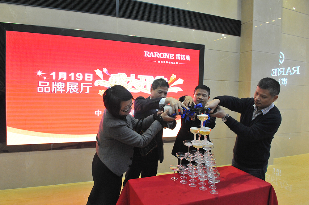 2015年1月19日,隨著喜慶的炮竹聲響,雷諾表總部展廳盛大開業!董事長詹西洲先生,總經理詹江洲先生,及詹省洲先生出席開業慶典,并親自推開展廳大門,宣布展廳正式開業迎賓!雷諾表全體員工以及來自全國各個省市的區域經理,共同見證了2015年開年盛事。